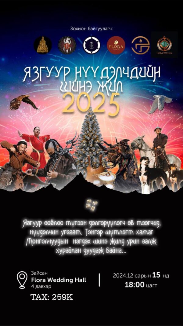 ЯЗГУУР СОЁЛОО ТҮГЭЭН ДЭЛГЭРҮҮЛЭГЧ ӨВ ТЭЭГЧИД, НҮҮДЭЛЧИН УГСААТ, ТЭНГЭР ШҮТЛЭГТ, ХАМАГ МОНГОЛЧУУДЫН НЭГДЭХ ШИНЭ ЖИЛД 2024 ОНЫ 12 ДУГААР САРЫН 15-НЫ 18 ЦАГТ...